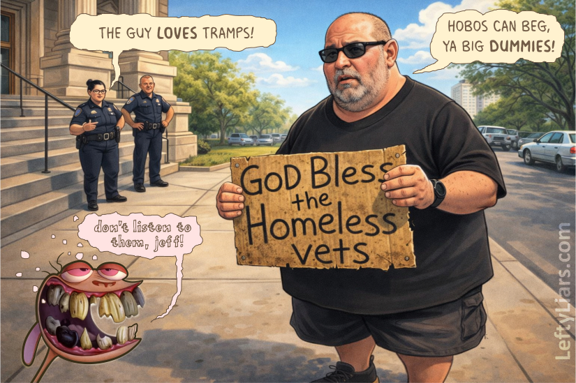 Jeff Gray (HonorYourOath) has spent years defending a homeless beggar’s supposed “right” to plant himself on a sidewalk outside a small business, day after day, until customers stop coming and the doors finally close. Let’s drop the sanctimony: this isn’t principled activism, it’s reckless absolutism that elevates one man’s cardboard sign above the livelihoods of working families. Gray frames it as free speech, but that framing collapses the moment you apply it at scale. If one hobo can legally drive a shop out of business, then hundreds can cripple entire commercial districts. Cities would implode. Tax bases would evaporate. Governments would shut it down instantly, and they do, no matter how loudly Jeff invokes homeless vets or threatens lawsuits. Society does not owe anyone the right to destroy commerce under the banner of “expression.”