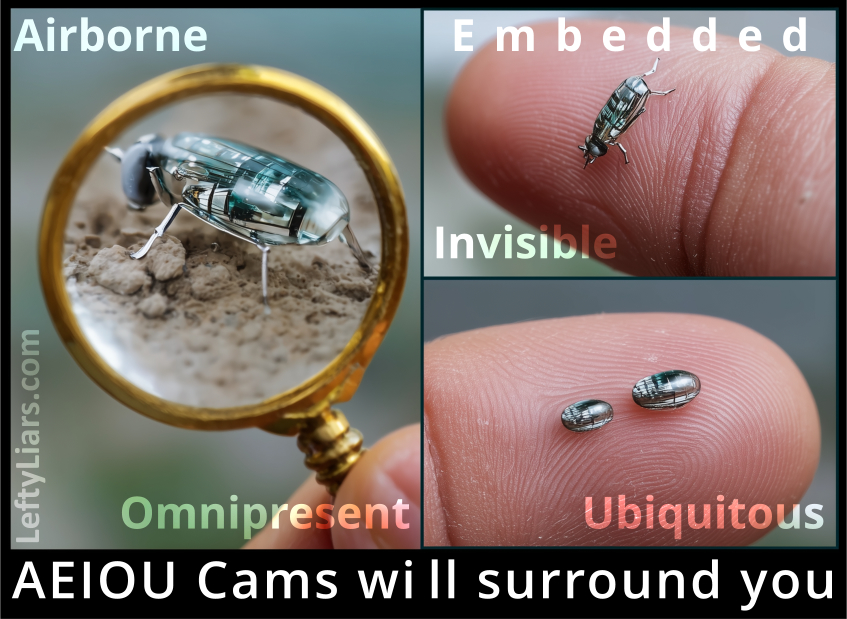 A, E, I, O, and U are the vowels we have in the alphabet. They also stand for Airborne, Embedded, Invisible, Omnipresent, & Ubiquitous. Such cams are coming.