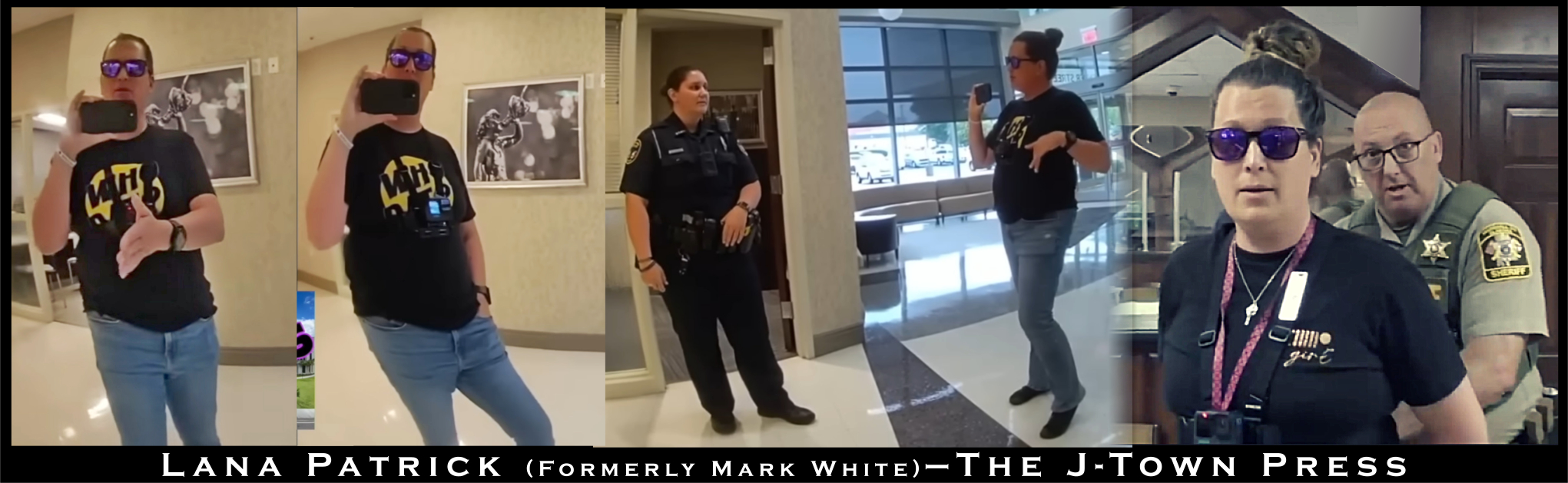 Lana Patrick, born Mark White (The J-Town Press), is such an effective First Amendment Auditor that there is little to critique, so this won’t be very long. Police body-cams, building-cams, excellent video effects, and text, headings, arrows, symbols, divided screens, and everything needed to communicate clearly are seen in J-Town’s videos. The footage is well-made, showing a natural artistic flair when recording, and the commentary is also spot-on.